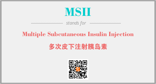 上述内容是“Multiple Subcutaneous Insulin Injection”作为“MSII”的缩写,解释为“多次皮下注射胰岛素”时的信息,以及英文缩略词MSII所代表的英文单词,其对应的中文拼音、详细解释以及在英文中的流行度和相关分类、应用领域及应用示例等。