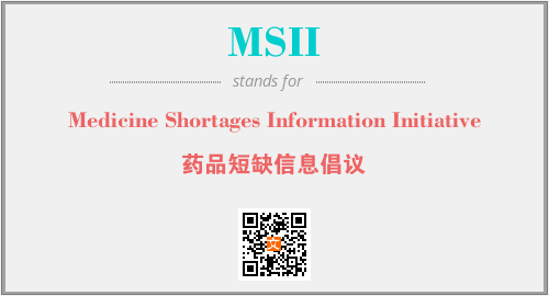 上述内容是“Medicine Shortages Information Initiative”作为“MSII”的缩写,解释为“药品短缺信息倡议”时的信息,以及英文缩略词MSII所代表的英文单词,其对应的中文拼音、详细解释以及在英文中的流行度和相关分类、应用领域及应用示例等。
