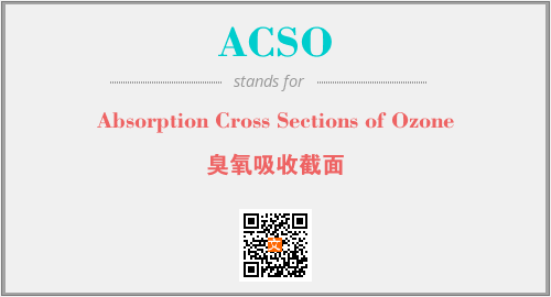英文缩略词“ACSO”经常作为“Absorption Cross Sections of Ozone”的英文缩写来使用,中文表示:“臭氧吸收截面”。本文将详细介绍英文缩写词ACSO所代表英文单词,其对应的中文拼音、详细解释以及在英语中的流行度。此外,还有关于缩略词ACSO的分类、应用领域及相关应用示例等。