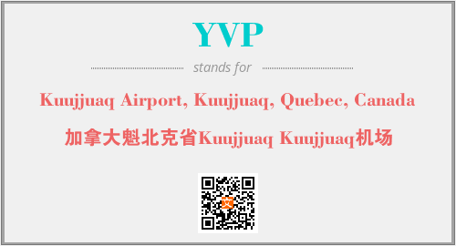 英文缩略词“YVP”经常作为“Kuujjuaq Airport, Kuujjuaq, Quebec, Canada”的英文缩写来使用,中文表示:“加拿大魁北克省Kuujjuaq Kuujjuaq机场”。本文将详细介绍英文缩写词YVP所代表英文单词,其对应的中文拼音、详细解释以及在英语中的流行度。此外,还有关于缩略词YVP的分类、应用领域及相关应用示例等。
