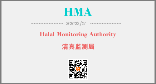 上述内容是“Halal Monitoring Authority”作为“HMA”的缩写,解释为“清真监测局”时的信息,以及英文缩略词HMA所代表的英文单词,其对应的中文拼音、详细解释以及在英文中的流行度和相关分类、应用领域及应用示例等。
