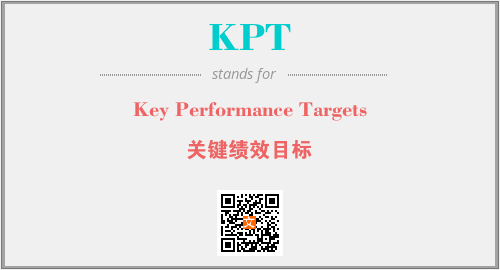 英文缩略词“KPT”经常作为“Key Performance Targets”的英文缩写来使用,中文表示:“关键绩效目标”。本文将详细介绍英文缩写词KPT所代表英文单词,其对应的中文拼音、详细解释以及在英语中的流行度。此外,还有关于缩略词KPT的分类、应用领域及相关应用示例等。