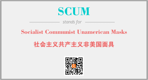上述内容是“Socialist Communist Unamerican Masks”作为“SCUM”的缩写,解释为“社会主义共产主义非美国面具”时的信息,以及英文缩略词SCUM所代表的英文单词,其对应的中文拼音、详细解释以及在英文中的流行度和相关分类、应用领域及应用示例等。