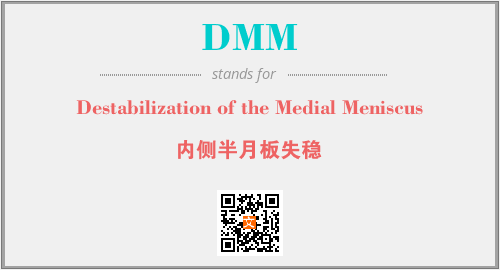 上述内容是“Destabilization of the Medial Meniscus”作为“DMM”的缩写,解释为“内侧半月板失稳”时的信息,以及英文缩略词DMM所代表的英文单词,其对应的中文拼音、详细解释以及在英文中的流行度和相关分类、应用领域及应用示例等。