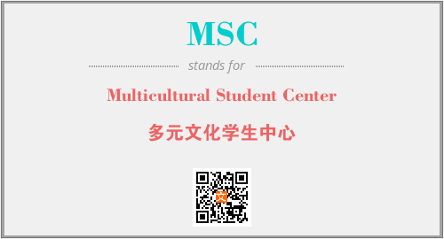 上述内容是“Multicultural Student Center”作为“MSC”的缩写,解释为“多元文化学生中心”时的信息,以及英文缩略词MSC所代表的英文单词,其对应的中文拼音、详细解释以及在英文中的流行度和相关分类、应用领域及应用示例等。