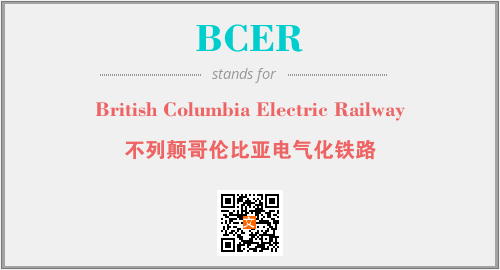 上述内容是“British Columbia Electric Railway”作为“BCER”的缩写,解释为“不列颠哥伦比亚电气化铁路”时的信息,以及英文缩略词BCER所代表的英文单词,其对应的中文拼音、详细解释以及在英文中的流行度和相关分类、应用领域及应用示例等。