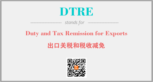 以上为Duty and Tax Remission for Exports英文缩略词DTRE的中文解释,以及该英文缩写在英语的流行度、分类和应用领域方面的信息。