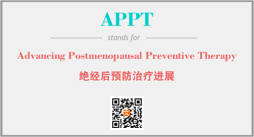 上述内容是“Advancing Postmenopausal Preventive Therapy”作为“APPT”的缩写,解释为“绝经后预防治疗进展”时的信息,以及英文缩略词APPT所代表的英文单词,其对应的中文拼音、详细解释以及在英文中的流行度和相关分类、应用领域及应用示例等。