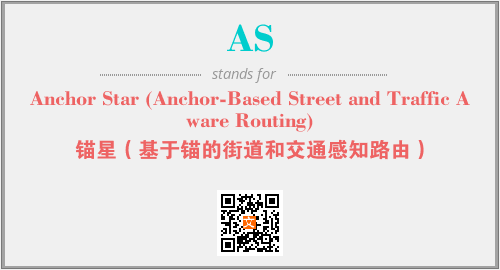 上述内容是“Anchor Star (Anchor-Based Street and Traffic Aware Routing)”作为“AS”的缩写,解释为“锚星(基于锚的街道和交通感知路由)”时的信息,以及英文缩略词AS所代表的英文单词,其对应的中文拼音、详细解释以及在英文中的流行度和相关分类、应用领域及应用示例等。