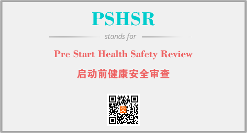 上述内容是“Pre Start Health Safety Review”作为“PSHSR”的缩写,解释为“启动前健康安全审查”时的信息,以及英文缩略词PSHSR所代表的英文单词,其对应的中文拼音、详细解释以及在英文中的流行度和相关分类、应用领域及应用示例等。