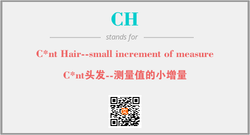 英文缩略词“CH”经常作为“C*nt Hair--small increment of measure”的英文缩写来使用,中文表示:“C*nt头发--测量值的小增量”。本文将详细介绍英文缩写词CH所代表英文单词,其对应的中文拼音、详细解释以及在英语中的流行度。此外,还有关于缩略词CH的分类、应用领域及相关应用示例等。