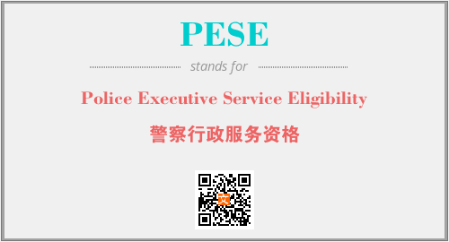 上述内容是“Police Executive Service Eligibility”作为“PESE”的缩写,解释为“警察行政服务资格”时的信息,以及英文缩略词PESE所代表的英文单词,其对应的中文拼音、详细解释以及在英文中的流行度和相关分类、应用领域及应用示例等。
