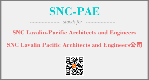 英文缩略词“SNC-PAE”经常作为“SNC Lavalin-Pacific Architects and Engineers”的英文缩写来使用,中文表示:“SNC Lavalin Pacific Architects and Engineers公司”。本文将详细介绍英文缩写词SNC-PAE所代表英文单词,其对应的中文拼音、详细解释以及在英语中的流行度。此外,还有关于缩略词SNC-PAE的分类、应用领域及相关应用示例等。
