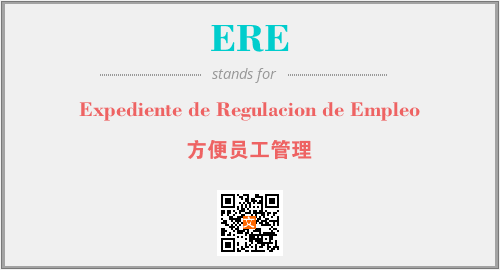 上述内容是“Expediente de Regulacion de Empleo”作为“ERE”的缩写,解释为“方便员工管理”时的信息,以及英文缩略词ERE所代表的英文单词,其对应的中文拼音、详细解释以及在英文中的流行度和相关分类、应用领域及应用示例等。