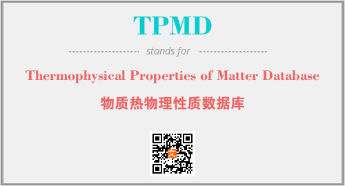 上述内容是“Thermophysical Properties of Matter Database”作为“TPMD”的缩写,解释为“物质热物理性质数据库”时的信息,以及英文缩略词TPMD所代表的英文单词,其对应的中文拼音、详细解释以及在英文中的流行度和相关分类、应用领域及应用示例等。