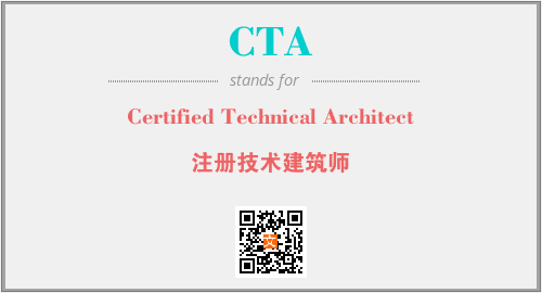 英文缩略词“CTA”经常作为“Certified Technical Architect”的英文缩写来使用,中文表示:“注册技术建筑师”。本文将详细介绍英文缩写词CTA所代表英文单词,其对应的中文拼音、详细解释以及在英语中的流行度。此外,还有关于缩略词CTA的分类、应用领域及相关应用示例等。
