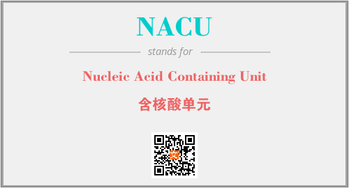 上述内容是“Nucleic Acid Containing Unit”作为“NACU”的缩写,解释为“含核酸单元”时的信息,以及英文缩略词NACU所代表的英文单词,其对应的中文拼音、详细解释以及在英文中的流行度和相关分类、应用领域及应用示例等。