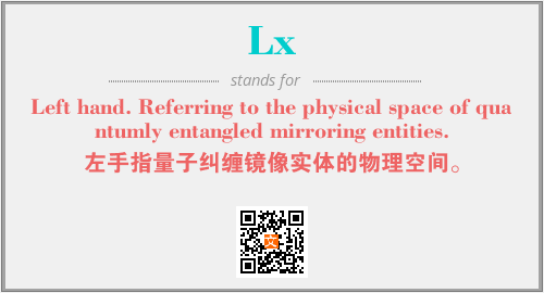 上述内容是“Left hand. Referring to the physical space of quantumly entangled mirroring entities.”作为“Lx”的缩写,解释为“左手指量子纠缠镜像实体的物理空间。”时的信息,以及英文缩略词Lx所代表的英文单词,其对应的中文拼音、详细解释以及在英文中的流行度和相关分类、应用领域及应用示例等。