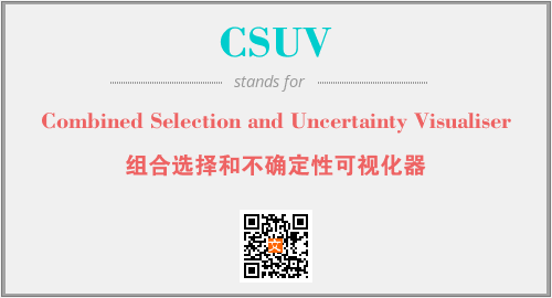 上述内容是“Combined Selection and Uncertainty Visualiser”作为“CSUV”的缩写,解释为“组合选择和不确定性可视化器”时的信息,以及英文缩略词CSUV所代表的英文单词,其对应的中文拼音、详细解释以及在英文中的流行度和相关分类、应用领域及应用示例等。