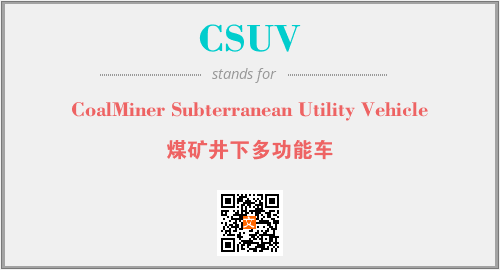 英文缩略词“CSUV”经常作为“CoalMiner Subterranean Utility Vehicle”的英文缩写来使用,中文表示:“煤矿井下多功能车”。本文将详细介绍英文缩写词CSUV所代表英文单词,其对应的中文拼音、详细解释以及在英语中的流行度。此外,还有关于缩略词CSUV的分类、应用领域及相关应用示例等。
