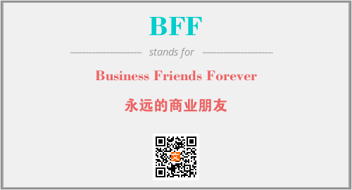 以上为Business Friends Forever英文缩略词BFF的中文解释,以及该英文缩写在英语的流行度、分类和应用领域方面的信息。
