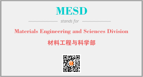 上述内容是“Materials Engineering and Sciences Division”作为“MESD”的缩写,解释为“材料工程与科学部”时的信息,以及英文缩略词MESD所代表的英文单词,其对应的中文拼音、详细解释以及在英文中的流行度和相关分类、应用领域及应用示例等。