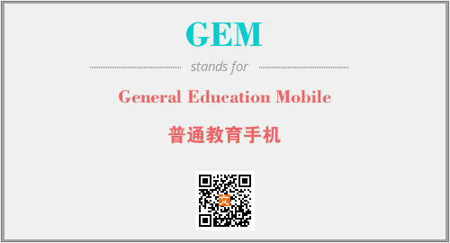 英文缩略词“GEM”经常作为“General Education Mobile”的英文缩写来使用,中文表示:“普通教育手机”。本文将详细介绍英文缩写词GEM所代表英文单词,其对应的中文拼音、详细解释以及在英语中的流行度。此外,还有关于缩略词GEM的分类、应用领域及相关应用示例等。