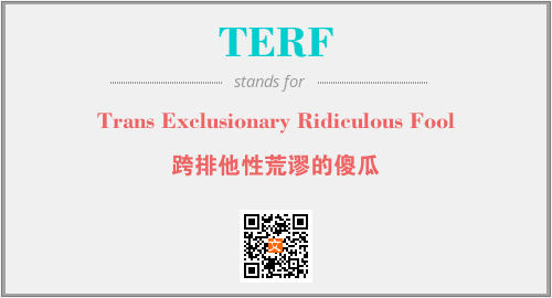 以上为Trans Exclusionary Ridiculous Fool英文缩略词TERF的中文解释,以及该英文缩写在英语的流行度、分类和应用领域方面的信息。