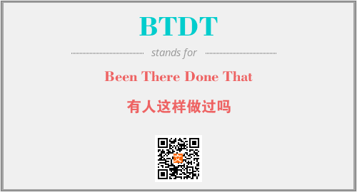 以上为Been There Done That英文缩略词BTDT的中文解释,以及该英文缩写在英语的流行度、分类和应用领域方面的信息。