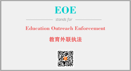 上述内容是“Education Outreach Enforcement”作为“EOE”的缩写,解释为“教育外联执法”时的信息,以及英文缩略词EOE所代表的英文单词,其对应的中文拼音、详细解释以及在英文中的流行度和相关分类、应用领域及应用示例等。