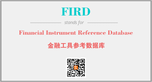 上述内容是“Financial Instrument Reference Database”作为“FIRD”的缩写,解释为“金融工具参考数据库”时的信息,以及英文缩略词FIRD所代表的英文单词,其对应的中文拼音、详细解释以及在英文中的流行度和相关分类、应用领域及应用示例等。