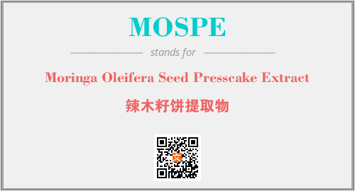 上述内容是“Moringa Oleifera Seed Presscake Extract”作为“MOSPE”的缩写,解释为“辣木籽饼提取物”时的信息,以及英文缩略词MOSPE所代表的英文单词,其对应的中文拼音、详细解释以及在英文中的流行度和相关分类、应用领域及应用示例等。