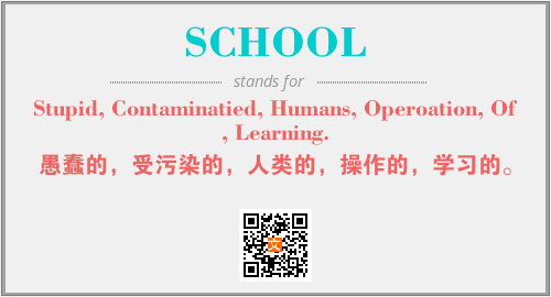 上述内容是“Stupid, Contaminatied, Humans, Operoation, Of, Learning.”作为“SCHOOL”的缩写,解释为“愚蠢的,受污染的,人类的,操作的,学习的。”时的信息,以及英文缩略词SCHOOL所代表的英文单词,其对应的中文拼音、详细解释以及在英文中的流行度和相关分类、应用领域及应用示例等。
