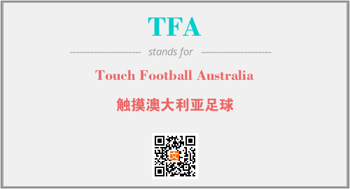 上述内容是“Touch Football Australia”作为“TFA”的缩写,解释为“触摸澳大利亚足球”时的信息,以及英文缩略词TFA所代表的英文单词,其对应的中文拼音、详细解释以及在英文中的流行度和相关分类、应用领域及应用示例等。