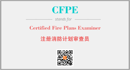 上述内容是“Certified Fire Plans Examiner”作为“CFPE”的缩写,解释为“注册消防计划审查员”时的信息,以及英文缩略词CFPE所代表的英文单词,其对应的中文拼音、详细解释以及在英文中的流行度和相关分类、应用领域及应用示例等。