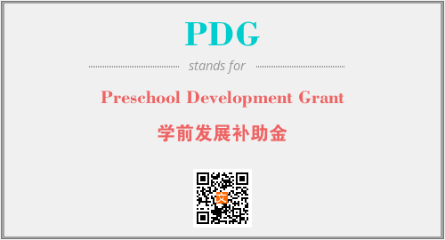 上述内容是“Preschool Development Grant”作为“PDG”的缩写,解释为“学前发展补助金”时的信息,以及英文缩略词PDG所代表的英文单词,其对应的中文拼音、详细解释以及在英文中的流行度和相关分类、应用领域及应用示例等。