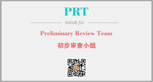 英文缩略词“PRT”经常作为“Preliminary Review Team”的英文缩写来使用,中文表示:“初步审查小组”。本文将详细介绍英文缩写词PRT所代表英文单词,其对应的中文拼音、详细解释以及在英语中的流行度。此外,还有关于缩略词PRT的分类、应用领域及相关应用示例等。