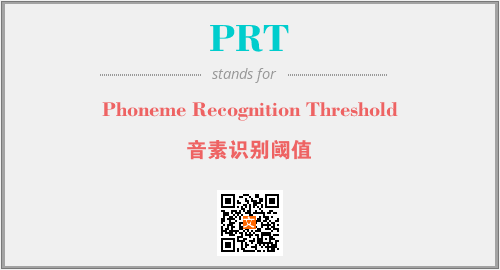 上述内容是“Phoneme Recognition Threshold”作为“PRT”的缩写,解释为“音素识别阈值”时的信息,以及英文缩略词PRT所代表的英文单词,其对应的中文拼音、详细解释以及在英文中的流行度和相关分类、应用领域及应用示例等。
