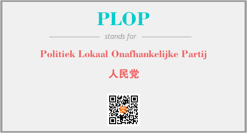 英文缩略词“PLOP”经常作为“Politiek Lokaal Onafhankelijke Partij”的英文缩写来使用,中文表示:“人民党”。本文将详细介绍英文缩写词PLOP所代表英文单词,其对应的中文拼音、详细解释以及在英语中的流行度。此外,还有关于缩略词PLOP的分类、应用领域及相关应用示例等。
