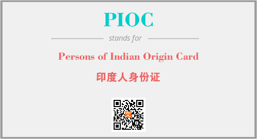 上述内容是“Persons of Indian Origin Card”作为“PIOC”的缩写,解释为“印度人身份证”时的信息,以及英文缩略词PIOC所代表的英文单词,其对应的中文拼音、详细解释以及在英文中的流行度和相关分类、应用领域及应用示例等。