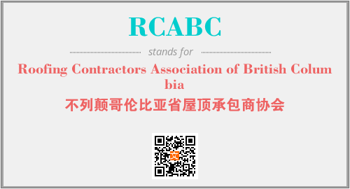 上述内容是“Roofing Contractors Association of British Columbia”作为“RCABC”的缩写,解释为“不列颠哥伦比亚省屋顶承包商协会”时的信息,以及英文缩略词RCABC所代表的英文单词,其对应的中文拼音、详细解释以及在英文中的流行度和相关分类、应用领域及应用示例等。
