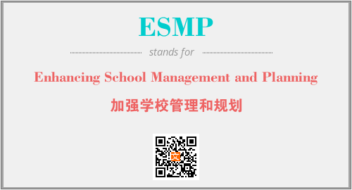 上述内容是“Enhancing School Management and Planning”作为“ESMP”的缩写,解释为“加强学校管理和规划”时的信息,以及英文缩略词ESMP所代表的英文单词,其对应的中文拼音、详细解释以及在英文中的流行度和相关分类、应用领域及应用示例等。