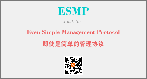 上述内容是“Even Simple Management Protocol”作为“ESMP”的缩写,解释为“即使是简单的管理协议”时的信息,以及英文缩略词ESMP所代表的英文单词,其对应的中文拼音、详细解释以及在英文中的流行度和相关分类、应用领域及应用示例等。