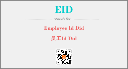 英文缩略词“EID”经常作为“Employee Id Did”的英文缩写来使用,中文表示:“员工Id Did”。本文将详细介绍英文缩写词EID所代表英文单词,其对应的中文拼音、详细解释以及在英语中的流行度。此外,还有关于缩略词EID的分类、应用领域及相关应用示例等。