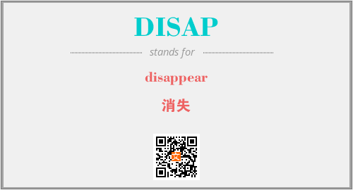 英文缩略词“DISAP”经常作为“disappear”的英文缩写来使用,中文表示:“消失”。本文将详细介绍英文缩写词DISAP所代表英文单词,其对应的中文拼音、详细解释以及在英语中的流行度。此外,还有关于缩略词DISAP的分类、应用领域及相关应用示例等。