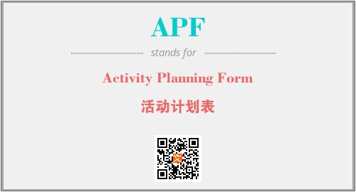 上述内容是“Activity Planning Form”作为“APF”的缩写,解释为“活动计划表”时的信息,以及英文缩略词APF所代表的英文单词,其对应的中文拼音、详细解释以及在英文中的流行度和相关分类、应用领域及应用示例等。