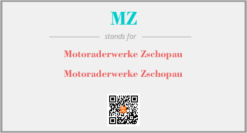 英文缩略词“MZ”经常作为“Motoraderwerke Zschopau”的英文缩写来使用,中文表示:“Motoraderwerke Zschopau”。本文将详细介绍英文缩写词MZ所代表英文单词,其对应的中文拼音、详细解释以及在英语中的流行度。此外,还有关于缩略词MZ的分类、应用领域及相关应用示例等。