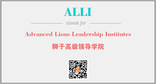 英文缩略词“ALLI”经常作为“Advanced Lions Leadership Institutes”的英文缩写来使用,中文表示:“狮子高级领导学院”。本文将详细介绍英文缩写词ALLI所代表英文单词,其对应的中文拼音、详细解释以及在英语中的流行度。此外,还有关于缩略词ALLI的分类、应用领域及相关应用示例等。