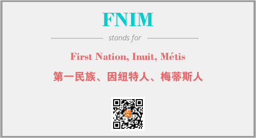 上述内容是“First Nation, Inuit, Métis”作为“FNIM”的缩写,解释为“第一民族、因纽特人、梅蒂斯人”时的信息,以及英文缩略词FNIM所代表的英文单词,其对应的中文拼音、详细解释以及在英文中的流行度和相关分类、应用领域及应用示例等。