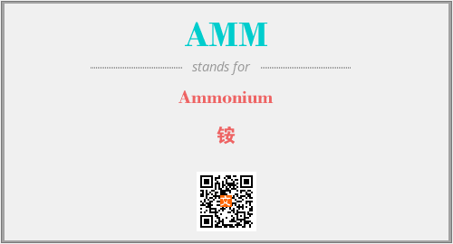 英文缩略词“AMM”经常作为“Ammonium”的英文缩写来使用,中文表示:“铵”。本文将详细介绍英文缩写词AMM所代表英文单词,其对应的中文拼音、详细解释以及在英语中的流行度。此外,还有关于缩略词AMM的分类、应用领域及相关应用示例等。